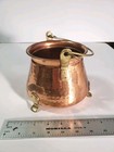 Vintage Hammered Copper Pot Cauldron Legs Iron Handle Planter Germany --small