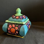 Vibrant Hand Painted Talavera Mexican Pottery Wedding Trinket Box With Lid