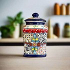 Mexican Talavera Style Hand Painted Pottery Canister Jar With Lid - 10." Tall