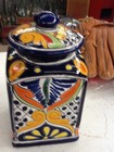 Vtg. Mexican Pottery Talavera Folk Art Hand Painted Cannister Container Floral