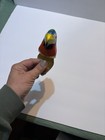 Vintage Hand Carved Hand Painted Wooden Parrot Stick 8” Orange Blue Green Yellow