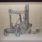 Antique Sketch Art Drawing Heavy Equipment Machinery Framed Signed 33'' X 28''