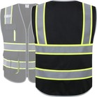 Fx Class2 Hi-vis Reflective Safety Vests With 6 Pockets And Zipper Front Black.