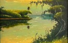 Vintage Florida Highwaymen Artist Tropical River Coastal Sunset Picture Signed
