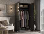 2-door Armoire 2-drawers Clothing Rod Sturdy Durable Wood Storage Wardrobe Black