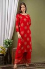 Women Floral Printed Red Kurta Set Indian Festival Ethnic Kurti With Palazzo Set