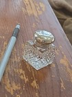 Antique Cut Crystal Glass Inkwell Sterling Pewter