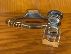 Vintage Double Inkwell ~ 2-sided Ink Well Silver-plate Sliding Top & Glass