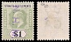 5773 Straits Settlements Sg136 $1 Green & Black. Ordinary Paper 1905. Used. C£50