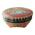Antique Japanese Handcrafted/painted Bamboo Weaved Basket With Lid 9” Diameter