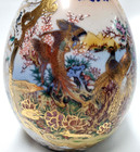 Antique 1912 Hand Painted Porcelain 24k Gold Accents Satsuma Egg On Brass Stand