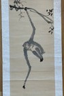 Hanger Scroll Japanese Painting Japan Monkey Vintage Kakejiku Old Art Moon G098