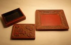 Vintage Old Japanese Japan Red Cinnabar 4.5 In X 3 In Box Lid 7 In X 5.7in Tray