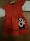 Vintage Girls Kate Greenaway Frock Garden Party Dress Size 3t Panda Red Tie Back