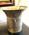 "large" Antique Heavy Brass Mortar And Pestle Pharmacy Herbs & Medicine Crusher