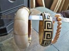 3 Vintage Lot Hinged Cream Pin White Bangle Tribal Chinese Key Large Bracelets