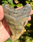 Great Shape Very Dark Serrated 4.10" Fossil Megalodon Shark Tooth - Usa