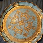 Vtg Italian Florentine Ornate Gold Gilt Round Wood Plate Scalloped O.f.m. Blue
