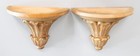 Pair Of Large Vintage Italian Whitewash Gilt Wood Fluted Wall Brackets Shelves