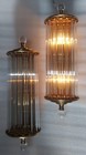 Pair Vintage Art Deco Nickel Brass Ribbed Glass Rod Ship Light Wall Sconces Lamp