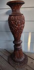 Vintage Hand Carved Oak Or Chestnut Decorative Wood Urn W/great Detail 31" Tall