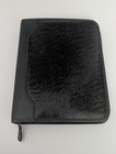 Franklin Covey Black Cowhide Suede Leather 6 Ring Organizer Zipper Binder 8.5”
