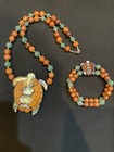 New Turtle Jade Abalone Vintage Lee Sands Necklace Bracelet Set Wood Beads Sea