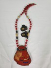 Vintage Lee Sands Palm Tree Sand Art Beaded Necklace & Pierced Earring Set 20"