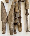 Lot Of 12 Antique Wooden Peg Metal Pins Insulator Holders Primitive Rusty