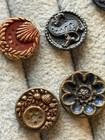 Nice Lot 12 Antique Metal Picture + Buttons, Railroad, Asian, Deponirt, Cherub