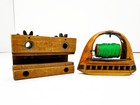 Antique Vintage Wooden Loom Tools Boat Shuttle Weaving Label Maker Spools Bobbin