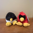 Bird Puffkins Plush "tux" Penguin & "casey" Cardinal Red Bird ~ Lot Of 2
