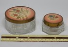 Vintage Powder Glass Jars Vanity Floral Design Art Deco Lot Of 2