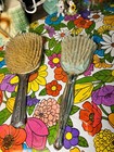 Vtg Marquetry Wood Inlay Vanity Mirror Hand Held Brush Lot Of 2