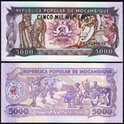Mozambique 5000 Meticais 1991, Unc-, 5 Pcs Lot, P-136