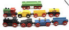 Mixed Wooden Train Lot – Brio-style Engines & Cars + Battery Engine (6pcs) As Is