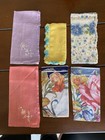 Lot Of 8 Vintage Linen Handkerchiefs Mixed Colors Embroidered Lace Crochet Edges