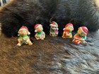 Lot Of 5 Vintage Teddy Bear Ceramic Ornaments Decorations Holiday Bell