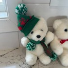 Lot Of 3 Vintage Plush Christmas White Teddy Bears
