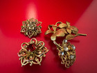 Vintage Lot Of Four Pretty Brooch Pins In Goldtone And Silvertone Metal