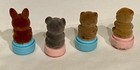 Vintage R.o.c. Lot Of 4 Mini Flocked Mouse, Bunny, Bears Stamps!