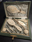Victorian Era Vanity Dresser Set Original Storage Case Brush Hair Comb Grooming