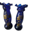 Vtg. Cobalt Blue 6.25" Vase W/ Flowers & Gold Metallic