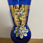 Vintage Cobalt Blue Bohemian Style Vase With Hand Painted Flowers & Gold