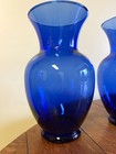 Vintage Pair Of Handblown Large Cobalt Blue Glass Vase ~ 11"