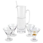 One (1) Vintage Martini Pitcher With Four (4) Large Martini Glasses And Stirrer