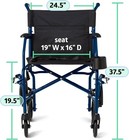 Medline Ultra Lightweight Foldable Transport Wheelchair 19in Seat Adults Blue