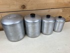Mcm 1950’s Kitchen Aluminum Canisters W/ Lid Vintage Flour/sugar/tea/grease/coff