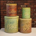 Vintage Country Style Nesting Canisters Tins Set Flour Sugar Coffee Tea