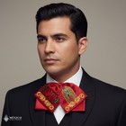 Red Mexican Embroidered Charro Moño – Traditional Satin Mariachi Bow Tie